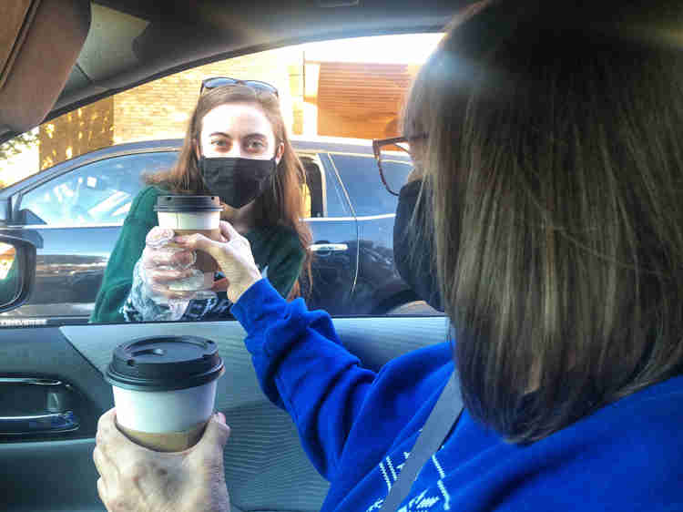 Come by and let us treat you! Drive-thru the Civic Center parking lot, and we will serve you in your car with one cookie and cocoa per person.