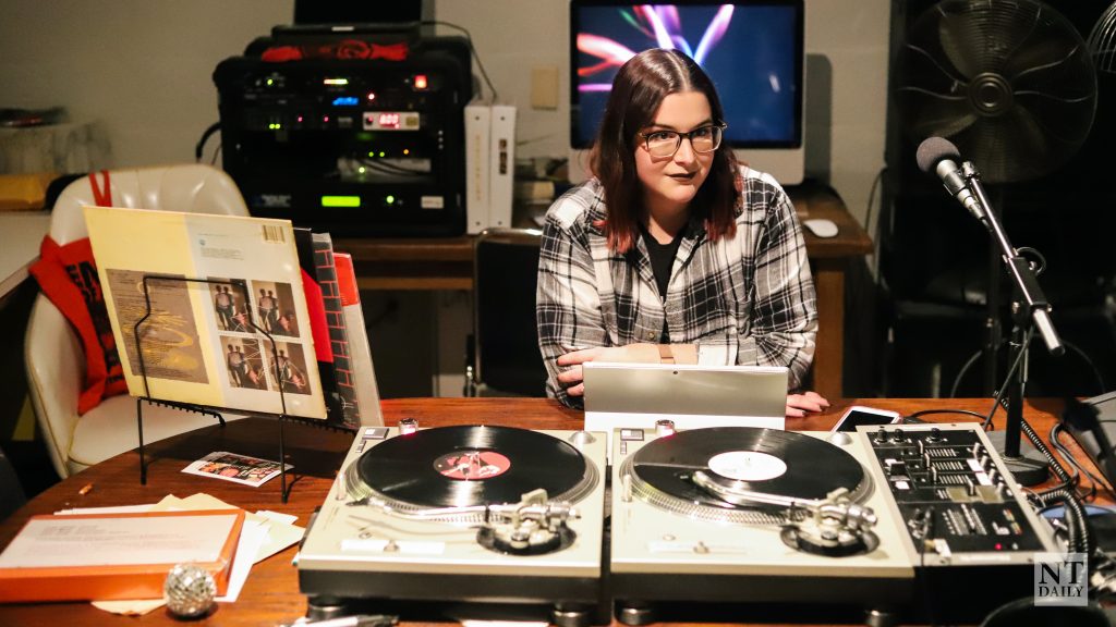 Featured Image: DJ Megz, weekly host of new wave-focused KUZU radio show “Mechanical Breakdown,” prepares for her show to air at 9:00 p.m. Image by Ryan Gossett