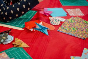 Featured Image: Nicol Fuller teaches an origami class at Patchouli Joe’s Books & Indulgences on Feb. 5, 2022. Photo by Matt Iaia