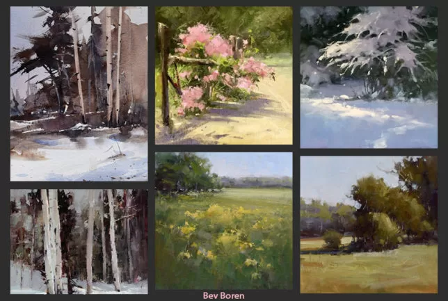 Bev Boren was born and raised in Texas and now resides in Trophy Club, Texas with her husband Ben. She is a signature member of the Outdoor Painters Society and the Southwestern Watercolor Society. She is also a member of the Oil Painters of America, American Impressionist Society, and American Watercolor Society.