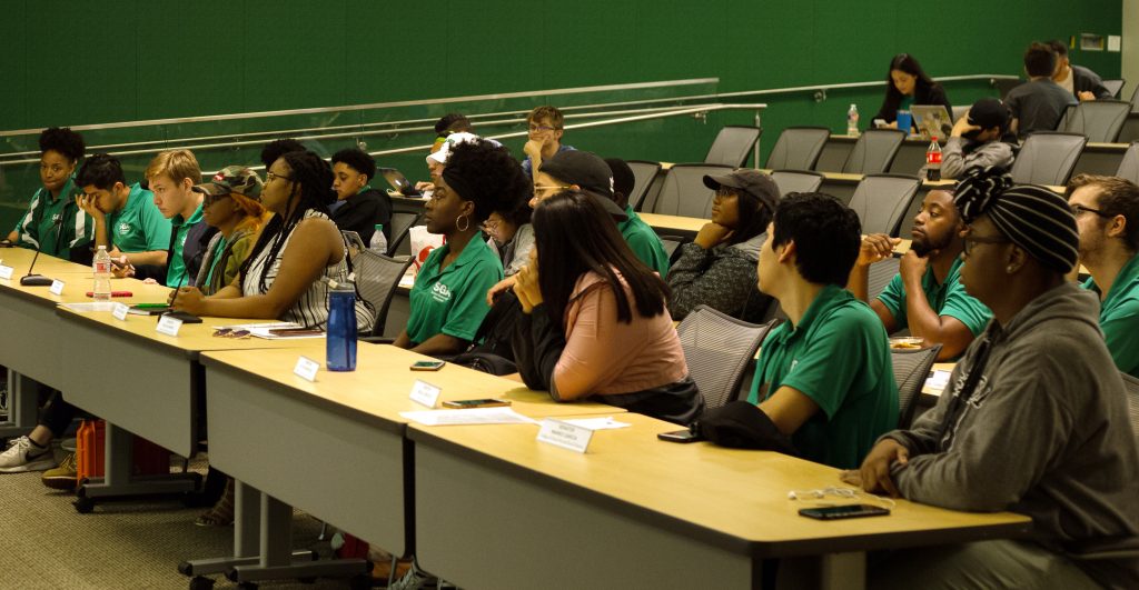 Featured Image: SGA senators sit idly during the Wednesday night meeting on April 24, 2019. Image by: Dimaggio Escobedo.