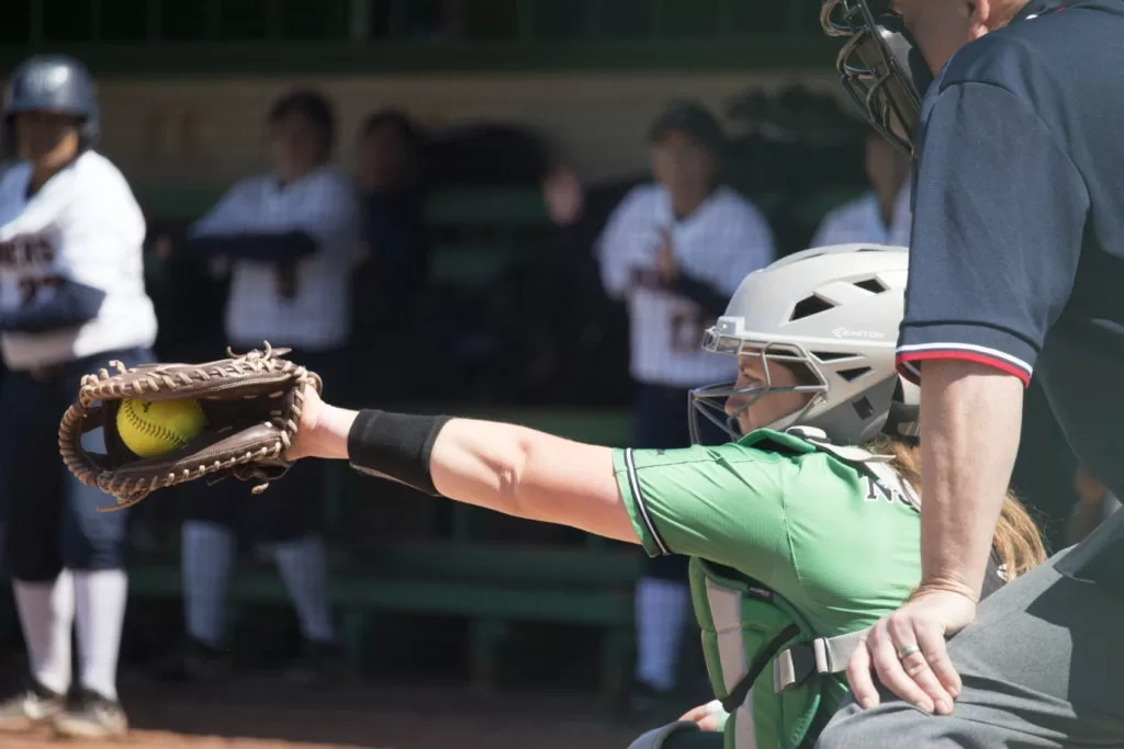 Featured Image: Junior catcher Nicole Ochotnicki catches a pitch from Hope Trautwein at the game against Texas-El Paso on March 17, 2019. Image by: Jordan Collard