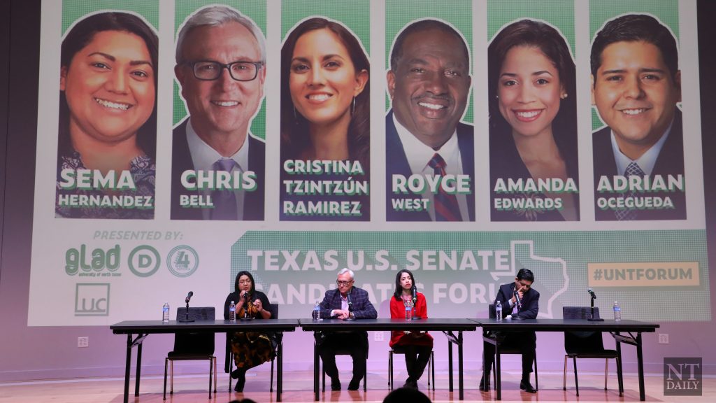 Multiple democratic candidates in the U.S. Senate race against Texas Sen. John Cornyn met in the Lyceum to answer question at Saturday’s U.S. Texas Senator Forum, hosted by the UNT Democrats, the Denton County Democratic Party and several other UNT groups. Among the candidates attending were Sema Hernandez, Chris Bell, Amanda Edwards and Adrian Ocegueda.