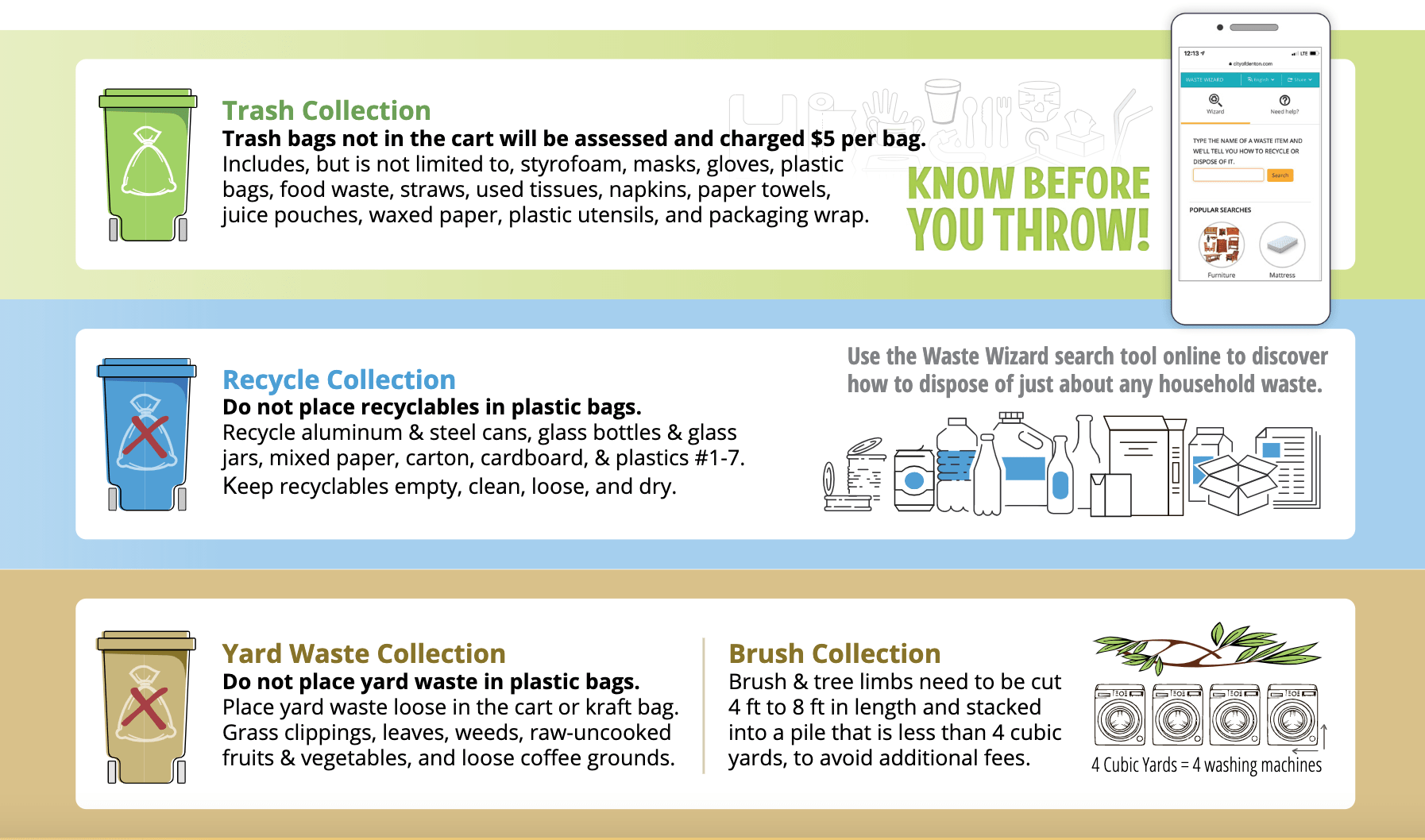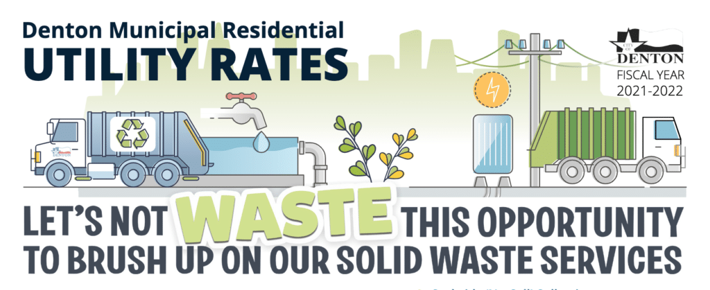 City staff works diligently alongside the City Council to provide you with quality, dependable services, but at a fair and competitive price. Throughout the month of October and into November, Denton utility customers will receive a fresh new copy of this year’s utility rates brochure alongside their utility bill, which is filled with information, not only about the updated pricing and fees, but also about the solid waste service updates that are now in effect.