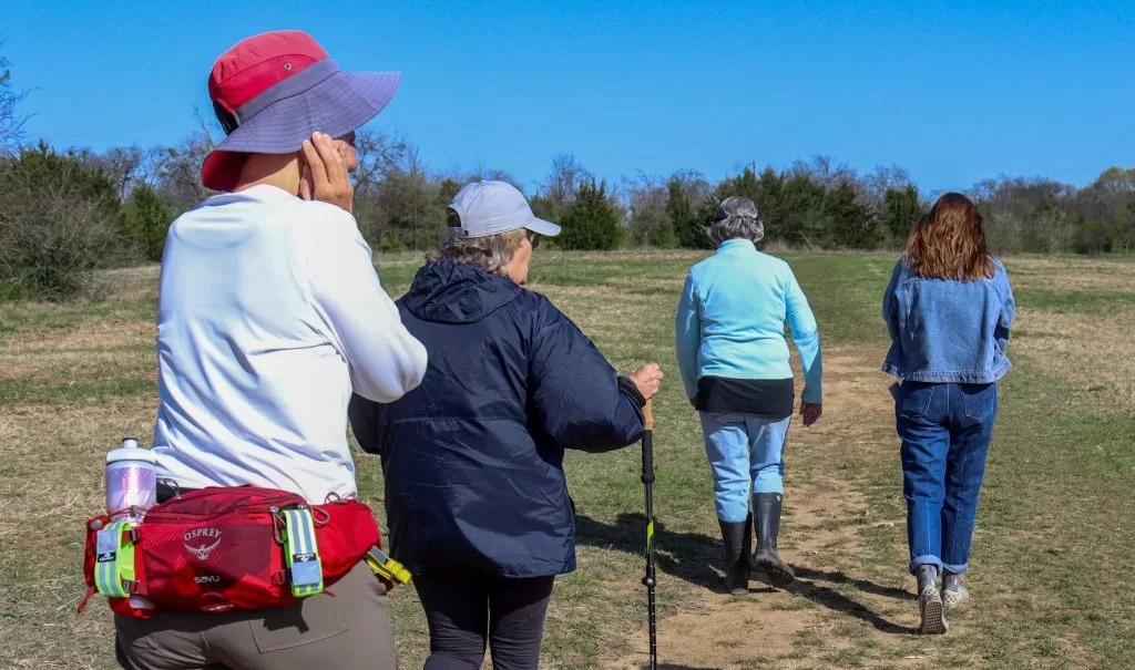 Featured Image: Participants of Woman’s We Hike walk on a trail at Denton Clear Creek Natural Heritage Center on April 6, 2022. Photo by Jami Hitchcock